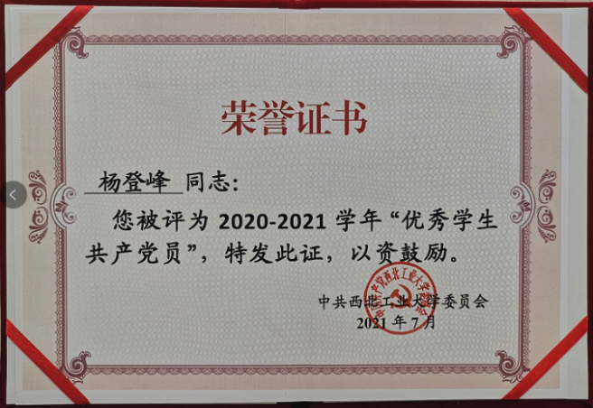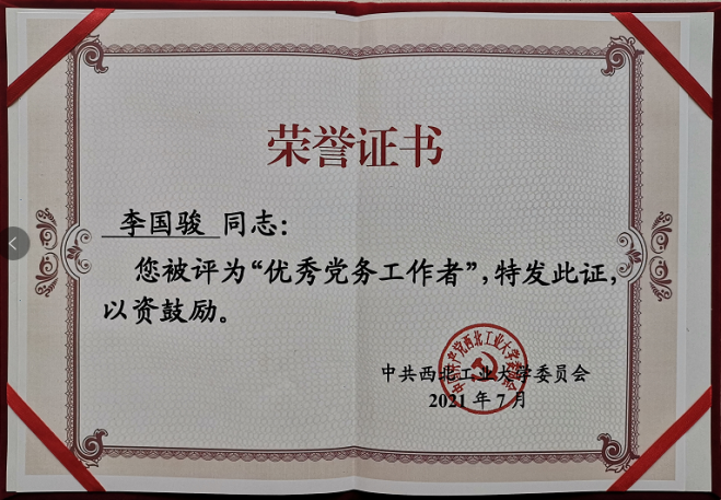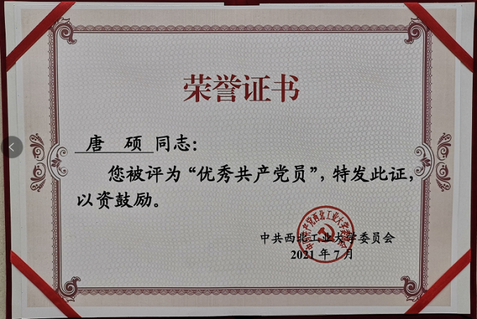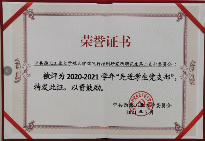 党委获评陕西省先进基层党组织荣誉称号。在学校“两优一先”评选表彰中,学院党委获评先进基层党组织、学院获评学生党建先进学院,唐硕获优秀共产党员、李国骏获优秀党务工作者、飞行控制研究所研究生第二党支部获先进学生党支部、朱远和杨登峰获优秀学生共产党员等荣誉称号。