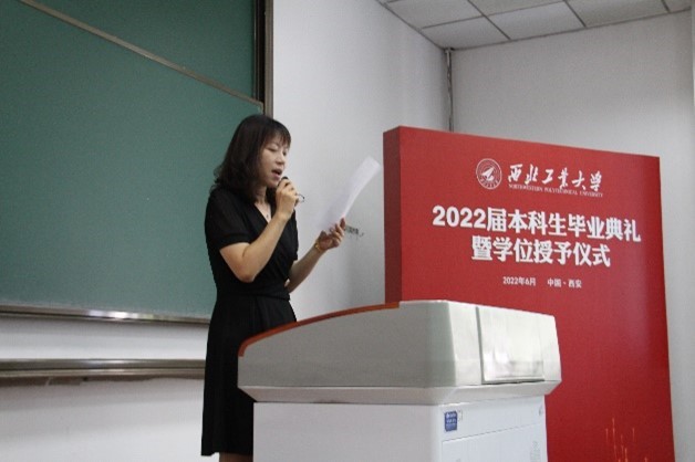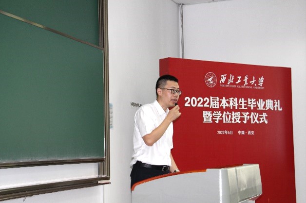 李广宁老师作为班主任代表发言,李老师结合《空气动力学》课程,将学生的成长成才过程类比为气动外形的优化,动力系统的加强,飞行阻力的减少,稳定性和操纵性的权衡,祝愿学生行稳致远,真正成为手可摘星辰的星际航行者。