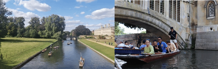 剑桥大学文化活动的高潮是剑河的撑船环节。同学们在带队老师和志愿者们的带领下同桨共舟,享受着宁静幽谧的剑河河畔风光,也分享着彼此的学习体验收获。剑河,见证了无数剑桥学子的成长历程,如今又成为带给同学们美好回忆的地方。