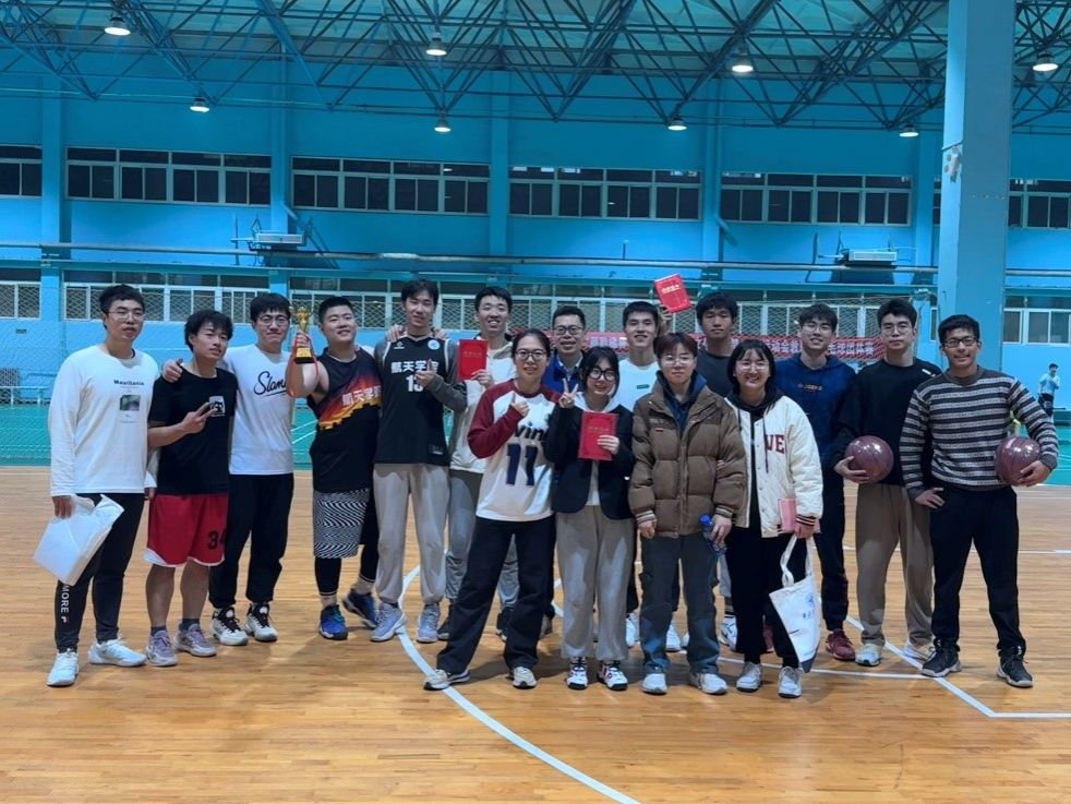 党委副书记韩冬和硕士生辅导员鄢德堃到比赛现场为决赛加油。赛后,韩冬副书记为本次篮球联赛获奖队伍颁奖。