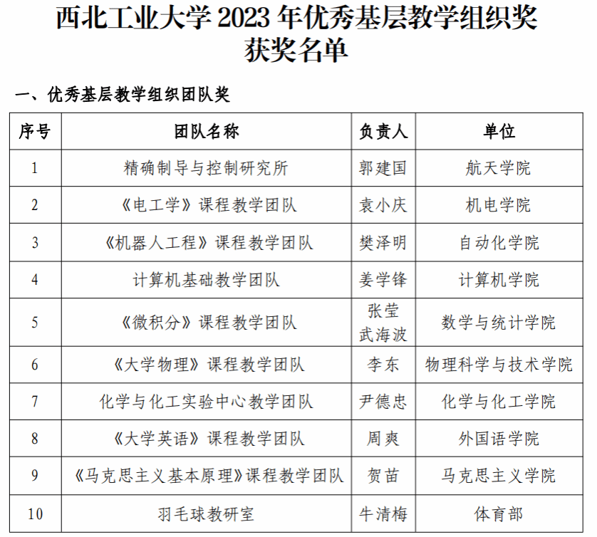 优秀基层教学组织团队奖”!