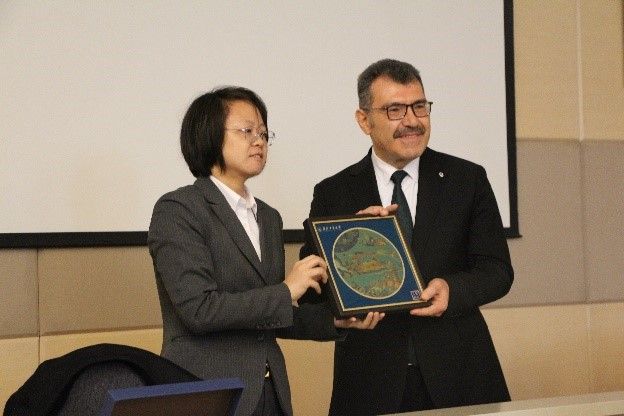 在闭幕式上,伊斯坦布尔理工大学校长Hasan Mandal发表致辞,对本次冬令营的成功举办表示祝贺,并高度评价了两校师生在交流中展现出的学术热情与开放态度,表示后续会签署备忘录,以推进两校进一步的学生交流、学生培养和科研合作。随后,双方代表互赠了具有纪念意义的礼物,象征着两校友谊的深化与未来合作的美好愿景。