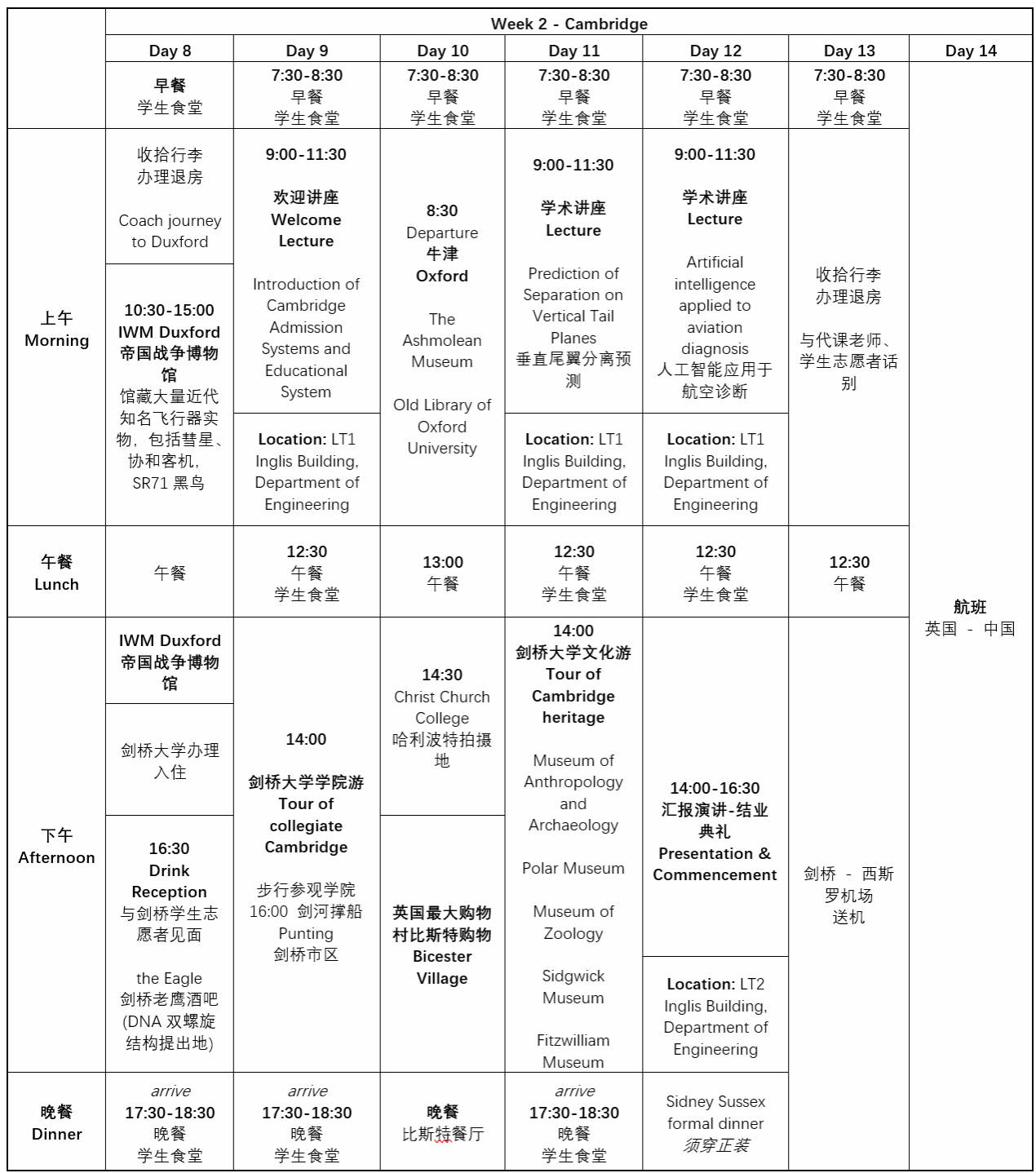29800元/人,费用包含在英国期间的所有费用,包括:课程费、住宿费、交通费用、三餐、导游费用、景点门票。