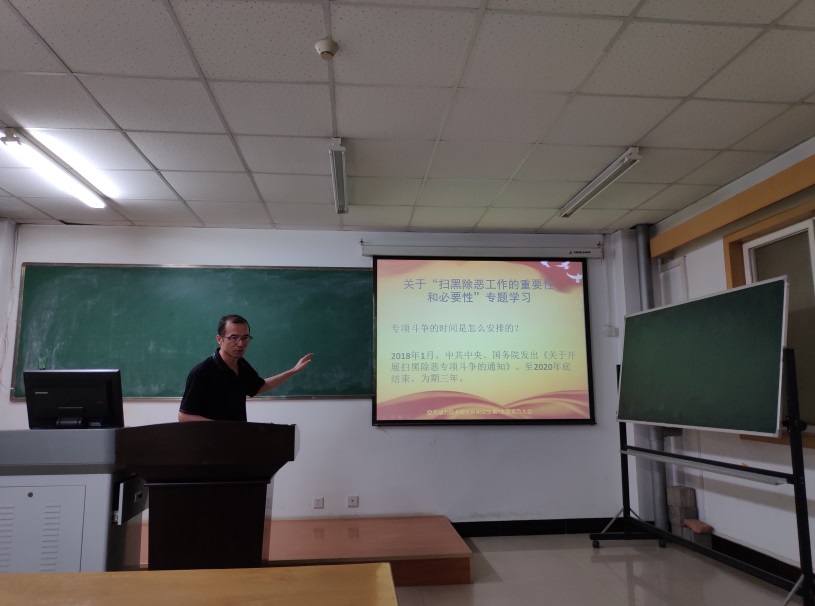 6号楼4楼研究生教室召开党组织生活会,开展“扫黑除恶”专题学习。