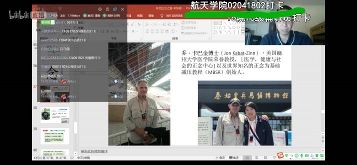 讲座别开生面。宋东峰老师用一则漫画小故事切入讲座内容,系统讲解了“正念”的有关知识及练习方法和要点,作为一种广泛应用于心理治疗的科学冥想技术,它的精髓在于引导人们有目的、有意识的关注、觉察当下的一切,而又不去做任何评判。这是一个心理领域的专业技术概念,宋老师语言活泼,风趣幽默,原本复杂深奥的心理专业问题在他的讲解下浅显易懂,隔着屏幕,大家依然感受到了轻松自然的气氛。