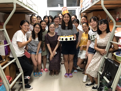 值得一提的是,为了让大家更体验到学院的人文关怀,也希望通过一次小范围的生日会更加拉近同学们之间的关系,慰问小组准备了生日蛋糕为8月30日过生日的张婧怡同学补一次生日。两位老师召集了2018级所有新入学的女生一起,同唱生日快乐歌,为张婧怡同学庆祝生日,也为所有新同学送祝福。张婧怡同学激动地表示道,真的太意外了,自己本科不是西工大的,来这里有点陌生,但是没想到学院会这么贴心,非常感动,以后希望和大家好好相处,共同度过两年多的同窗时光。